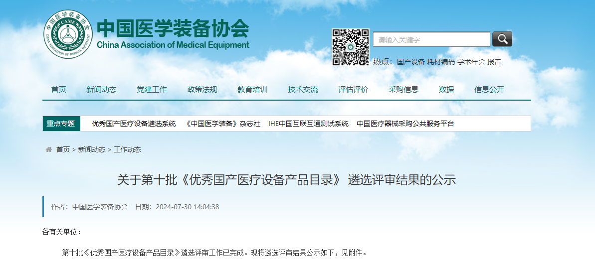 優秀國產醫療設備產品目錄遴選工作,由國家衛生健康委員會委托中國醫學裝備協會開展,旨在通過遴選符合臨床需求、質量優良、具有市場競爭力和發展潛力的國產醫療設備。優秀國產醫療設備的遴選,不僅是對入選產品的先進性能、優越的產品品質、完善的售后服務及其生產廠商綜合實力的鼓勵與認可,也為醫療機構設備采購提供了重要參考價值。